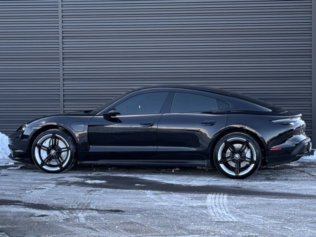 Tire Sealing Compound and Electric Air Compressor, Steering Wheel Heating i.c.w. Sport Chrono Package and Leather Interior, 14 Speakers, 14-Way Power Seats w/Memory Package, 4-Wheel Disc Brakes, Adaptive suspension, Advanced 4-Zone Climate Control, Air Conditioning, Alloy wheels, Apple CarPlay, Audio memory, Auto High-beam Headlights, Auto tilt-away steering wheel, Auto-dimming door mirrors, Auto-dimming Rear-View mirror, Auto-leveling suspension, Automatic temperature control, Brake assist, Bumpers: body-color, Compass, Delay-off headlights, Driver door bin, Driver vanity mirror, Dual front impact airbags, Dual front side impact airbags, Electronic Stability Control, Fixed Panoramic Roof in Glass, Four wheel independent suspension, Front & Rear ParkAssist w/Surround View, Front anti-roll bar, Front Bucket Seats, Front Center Armrest, Front dual zone A/C, Front reading lights, Fully automatic headlights, Garage door transmitter: HomeLink, Heated door mirrors, Heated front and rear seats, Heated rear seats, HVAC memory, Illuminated entry, Ionizer, Knee airbag, Lane Change Assist (LCA), Leather Seat Trim, Leather steering wheel, Low tire pressure warning, Memory seat, Mobile Charger Connect, Navigation system: Porsche Communication Management (PCM), Occupant sensing airbag, On-Board 150 kW/400V DC Charger, Outside temperature display, Overhead airbag, Overhead console, Panic alarm, Park Assist (Front & Rear) Incl. Surround View, Passenger door bin, Passenger vanity mirror, Porsche Ceramic Composite Brake (PCCB), Porsche Communication Management, Porsche Electric Sport Sound, Porsche InnoDrive w/Adaptive Cruise Control (ACC), Power door mirrors, Power driver seat, Power Folding Exterior Mirrors, Power passenger seat, Power steering Plus, Power windows, Premium Package, Race-Tex Seat Trim, Radio data system, Rain sensing wipers, Rear anti-roll bar, Rear fog lights, Rear reading lights, Rear seat center armrest, Rear side impact airbag, Rear window defroster, Remote keyless entry, Security system, Speed control, Speed-sensing steering, Split folding rear seat, Spoiler, Sport Chrono Package, Sport steering wheel, Steering wheel memory, Steering wheel mounted audio controls, Storage Package, Telescoping steering wheel, Thermally & Noise Insulated Glass, Tilt steering wheel, Traction control, Trip computer, Variably intermittent wipers, Wheels: 20" Taycan Turbo Aero, Wheels: 21" Mission E Design, Window Trim in High Gloss Black. Certified. Jet Black Metallic 2020 Porsche Taycan Turbo AWD 2-Speed Automatic Electric Motor