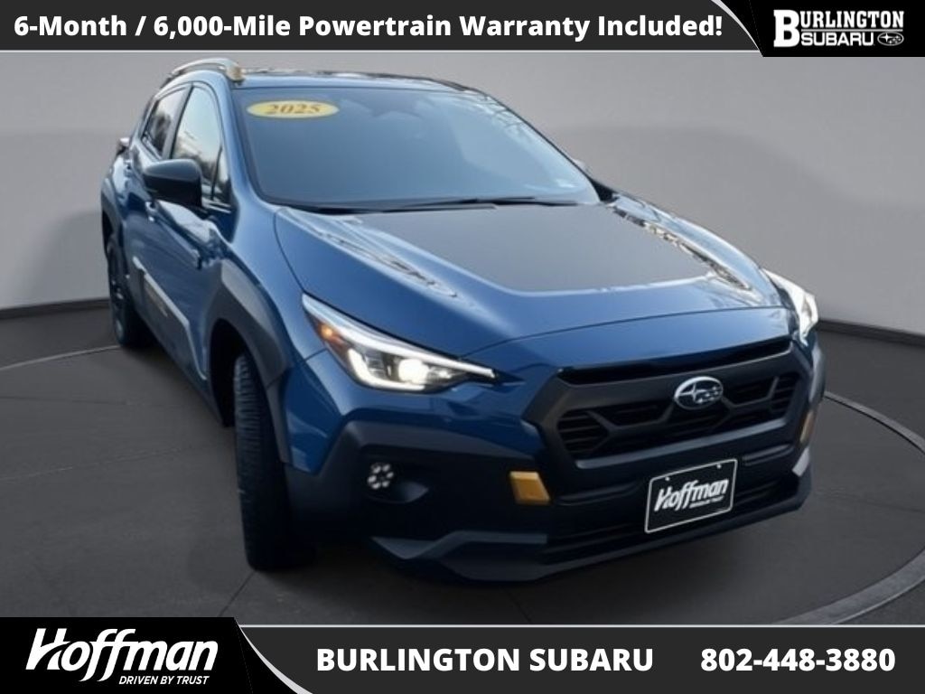 Clean CARFAX. Subaru Crosstrek Wilderness 2025 Certified. 4-Wheel Disc Brakes, ABS brakes, Air Conditioning, Alloy wheels, Anti-whiplash front head restraints, Auto High-beam Headlights, Automatic temperature control, Brake assist, Driver vanity mirror, Dual front impact airbags, Dual front side impact airbags, Electronic Stability Control, Emergency communication system, Exterior Parking Camera Rear, Four wheel independent suspension, Front dual zone A/C, Front fog lights, Front reading lights, Fully automatic headlights, Heated door mirrors, Heated Front Bucket Seats, Illuminated entry, Knee airbag, Leather Shift Knob, Leather steering wheel, Low tire pressure warning, Occupant sensing airbag, Outside temperature display, Overhead airbag, Panic alarm, Passenger vanity mirror, Power door mirrors, Power steering, Power windows, Radio: Subaru 11.6" Multimedia Plus System, Rear seat center armrest, Rear window defroster, Rear window wiper, Remote keyless entry, Speed control, Speed-sensing steering, Split folding rear seat, Steering wheel mounted audio controls, Tachometer, Telescoping steering wheel, Tilt steering wheel, Traction control, Trip computer, Turn signal indicator mirrors, Variably intermittent wipers, Wilderness StarTex Upholstery. Odometer is 522 miles below market average!