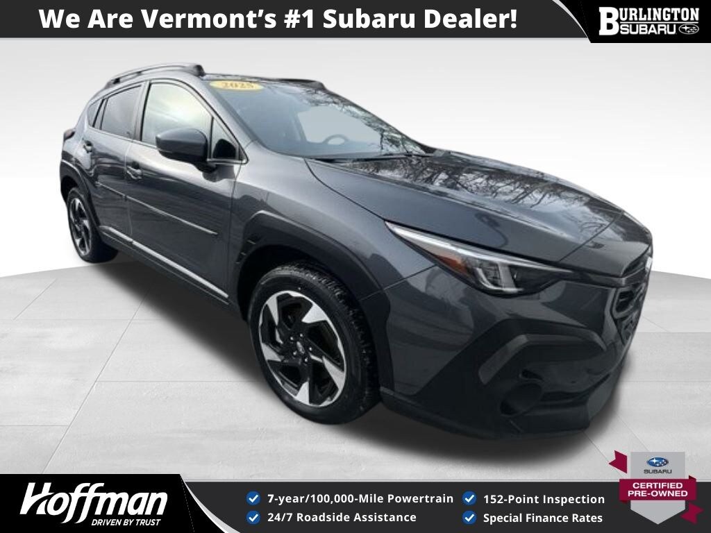 Clean CARFAX. Subaru Crosstrek Limited 2025 Certified. 4-Wheel Disc Brakes, ABS brakes, Air Conditioning, Alloy wheels, Anti-whiplash front head restraints, Auto High-beam Headlights, Automatic temperature control, Brake assist, Driver vanity mirror, Dual front impact airbags, Dual front side impact airbags, Electronic Stability Control, Emergency communication system, Exterior Parking Camera Rear, Four wheel independent suspension, Front dual zone A/C, Front fog lights, Front reading lights, Fully automatic headlights, H/K Speaker System & Power Moonroof & Navigation, harman/kardon Surround Sound Speaker System, Heated door mirrors, Heated Front Bucket Seats, Illuminated entry, Knee airbag, Leather Shift Knob, Leather steering wheel, Leather-Trimmed Upholstery, Low tire pressure warning, Occupant sensing airbag, Outside temperature display, Overhead airbag, Panic alarm, Passenger vanity mirror, Power door mirrors, Power driver seat, Power Moonroof, Power steering, Power windows, Radio: Subaru 11.6" Multimedia Nav System, Rear window defroster, Rear window wiper, Remote keyless entry, Speed control, Speed-sensing steering, Split folding rear seat, Steering wheel mounted audio controls, Tachometer, Telescoping steering wheel, Tilt steering wheel, Traction control, Trip computer, Turn signal indicator mirrors, Variably intermittent wipers. Odometer is 2503 miles below market average!