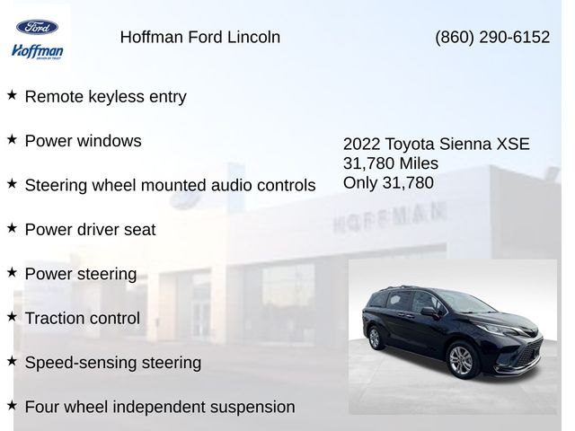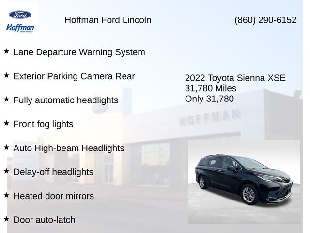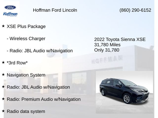 2022 Toyota Sienna XSE 7 Passenger Certified. CARFAX One-Owner. Priced below KBB Fair Purchase Price! Odometer is 41982 miles below market average! 35/36 City/Highway MPG