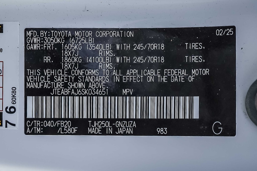 - Front tires: 245/70HR18.0