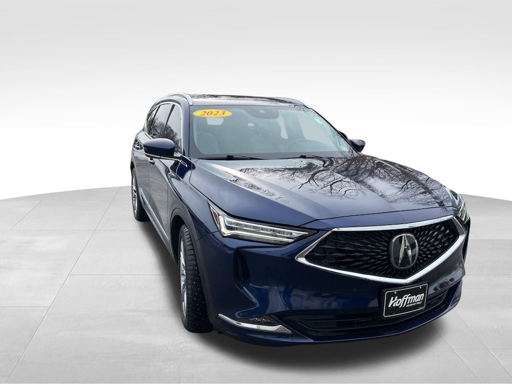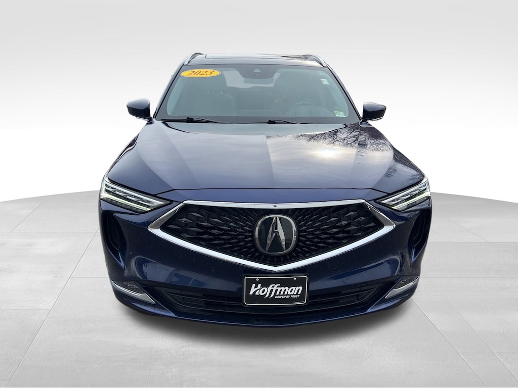 CARFAX One-Owner. Clean CARFAX. Acura MDX Advance 2023 3rd row seats: split-bench, 4-Wheel Disc Brakes, A/V remote: CabinControl, ABS brakes, Adaptive suspension, Air Conditioning, Alloy wheels, Anti-whiplash front head restraints, Apple CarPlay/Android Auto, Auto High-beam Headlights, Auto tilt-away steering wheel, Auto-dimming Rear-View mirror, Automatic temperature control, Brake assist, Compass, Delay-off headlights, Driver vanity mirror, Dual front impact airbags, Dual front side impact airbags, Electronic Stability Control, Emergency communication system: AcuraLink, Four wheel independent suspension, Front Bucket Seats, Front Center Armrest, Front dual zone A/C, Front fog lights, Front reading lights, Fully automatic headlights, Garage door transmitter: HomeLink, Heads-Up Display, Heated & Ventilated Front Sport Seats, Heated door mirrors, Heated front seats, Heated rear seats, Heated steering wheel, HVAC memory, Illuminated entry, Knee airbag, Lane departure: Lane Keeping Assist System (LKAS) active, Leather steering wheel, Low tire pressure warning, Memory seat, Navigation system: Acura Navigation System with 3D View, Occupant sensing airbag, Outside temperature display, Overhead airbag, Overhead console, Panic alarm, Passenger vanity mirror, Perforated Premium Milano Leather Trimmed Seats, Power door mirrors, Power driver seat, Power Liftgate, Power moonroof, Power passenger seat, Power steering, Power windows, Premium audio system: Acura/ELS Studio 3D, Rain sensing wipers, Rear air conditioning, Rear reading lights, Rear seat center armrest, Rear window defroster, Rear window wiper, Remote keyless entry, Speed control, Speed-sensing steering, Speed-Sensitive Wipers, Split folding rear seat, Steering wheel memory, Steering wheel mounted audio controls, Tachometer, Telescoping steering wheel, Tilt steering wheel, Traction control, Trip computer, Turn signal indicator mirrors, Variably intermittent wipers, Ventilated front seats. Odometer is 9128 miles below market average!