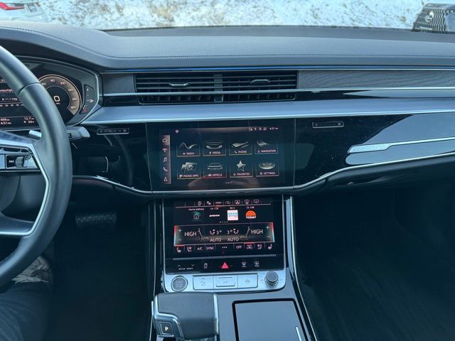 ONE OWNER, CLEAN CARFAX...NO ACCIDENTS, 6 MONTHS/6000 MILES POWERTRAIN WARRANTY, 17 Speakers, 20" 10-Parallel-Spoke-Design Wheels, 22-Way Heated Multi-Contour Comfort Front Seats, 4-Wheel Disc Brakes, ABS brakes, Adaptive suspension, Air Conditioning, Alloy wheels, Alu-Optic Buttons, AM/FM radio: SiriusXM, Audi Adaptive Cruise Assist w/Lane Guidance, Audi Side Assist, Audi smartphone interface (Apple CarPlay/Android Auto), Auto High-beam Headlights, Auto tilt-away steering wheel, Auto-dimming door mirrors, Auto-dimming Rear-View mirror, Auto-leveling suspension, Automatic temperature control, Bang & Olufsen Premium Sound System w/3D Sound, Brake assist, Bumpers: body-color, Comfort Plus Package, Compass, Contour/Ambient LED Interior Lighting Package, Delay-off headlights, Door auto-latch, Driver door bin, Driver vanity mirror, Dual front impact airbags, Dual front side impact airbags, Dual-Pane Acoustic Glass for Side Windows, Electronic Stability Control, Emergency communication system: Audi connect CARE, PRIME & PLUS, Executive Package, Four wheel independent suspension, Front anti-roll bar, Front Bucket Seats, Front Center Armrest w/Storage, Front dual zone A/C, Front fog lights, Front reading lights, Front Seat Massage Function, Garage door transmitter: HomeLink, Genuine wood door panel insert, HD Matrix-Design LED Headlights, Head restraints memory, Head-Up Display, Headlight cleaning, Heated door mirrors, Heated Front Seat Armrests, Heated front seats, Heated Rear Outboard Seats, Heated Steering Wheel, HVAC memory, Illuminated entry, Intersection Assist, Knee airbag, Leather Shift Knob, Leather steering wheel, Low tire pressure warning, Memory seat, Navigation system: MMI Navigation plus, Occupant sensing airbag, Outside temperature display, Overhead airbag, Overhead console, Panic alarm, Passenger door bin, Passenger vanity mirror, Power 2nd-Row Moonroof, Power adjustable front head restraints, Power door mirrors, Power driver seat, Power moonroof, Power passenger seat, Power steering, Power windows, Radio data system, Radio: Audi MMI Navigation Plus, Rear air conditioning, Rear anti-roll bar, Rear dual zone A/C, Rear fog lights, Rear reading lights, Rear seat center armrest, Rear side impact airbag, Rear window defroster, Remote keyless entry, Remote Park Assist Plus, Seatbelt memory, Security system, Speed control, Speed-sensing steering, Steering wheel memory, Steering wheel mounted audio controls, Tachometer, Telescoping steering wheel, Tilt steering wheel, Traction control, Traffic Sign Recognition, Trip computer, Turn signal indicator mirrors, Valcona Leather Seat Upholstery, Valetta Leather Seat Upholstery, Ventilated front seats. CARFAX One-Owner. Clean CARFAX. Vesuvius Gray Metallic 2023 Audi A8 L 55 quattro quattro 8-Speed Automatic with Tiptronic 3.0L V6 Turbocharged DOHC 24V LEV3-ULEV70 335hp