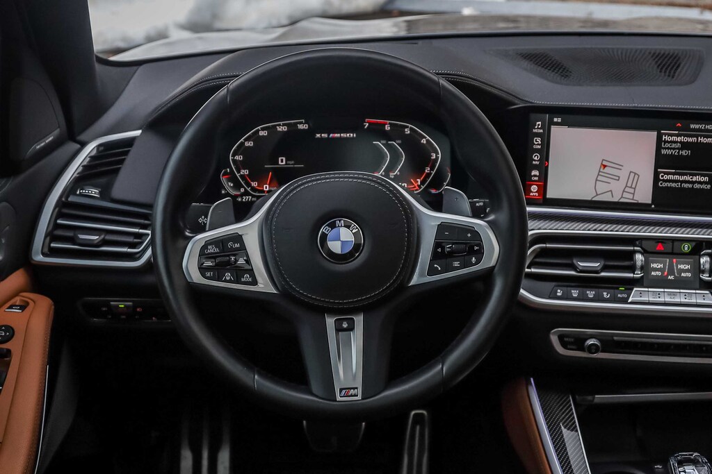 GPS/NAVIGATION SYSTEM, PREMIUM WHEELS, MOONROOF SUNROOF, REAR BACK UP CAMERA, LEATHER, BLUE TOOTH, SIRIUS XM, APPLE CARPLAY / ANDROID AUTO, Cognac Leather, Active Driving Assistant Pro, Active Park Distance Control, Active Roll Stabilization, Adaptive M Suspension Professional, Carbon Fiber Trim, Climate Comfort Package, Connected Package Pro, Drive Recorder, Driving Assistance Professional Package, Dynamic Handling Package, Executive Package, Extended Traffic Jam Assistant, Front & Rear Heated Seats, Front Bucket Seats, Front Massaging Seats, Gesture Control, Glass Controls, harman/kardon Surround Sound System, Head-Up Display, Heated Front Seats, Heated Front Seats w/Armrests & Steering Wheel, Icon Adaptive LED Headlights w/Laserlight, Increased Top Speed Limiter, Integral Active Steering, Navigation System, Panoramic Sky Lounge LED Roof, Parking Assistance Package, Parking Assistant Plus, Rear Manual Side Window Shades, Rear-View Camera, Surround View w/3D View, Ventilated front seats, Wheels: 22" x 9.5" Fr & 22" x 10.5" Rr Black. 2022 BMW X5 M50i Clean CARFAX. CARFAX One-Owner. 16/22 City/Highway MPG Odometer is 2767 miles below market average!