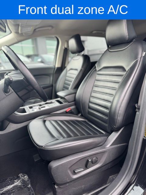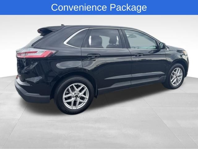 Edge SEL, Agate Black Metallic, 110V/150W AC Power Outlet, 4-Wheel Disc Brakes, 6 Speakers, ABS brakes, Air Conditioning, AM/FM radio: SiriusXM with 360L, Auto High-beam Headlights, Automatic temperature control, Brake assist, Convenience Package, Delay-off headlights, Dual front impact airbags, Dual front side impact airbags, Electronic Stability Control, Emergency communication system: SYNC 4 911 Assist, Equipment Group 201A, Fog Lamps w/Iconic Silver Bezel, FordPass Connect, Four wheel independent suspension, Front anti-roll bar, Front Bucket Seats, Front Center Armrest w/Storage, Front dual zone A/C, Front reading lights, Fully automatic headlights, Heated front seats, Illuminated entry, Knee airbag, Leather steering wheel, Leather-Wrapped Steering Wheel, Low tire pressure warning, Occupant sensing airbag, Outside temperature display, Overhead airbag, Overhead console, Passenger vanity mirror, Perimeter Alarm, Power driver seat, Power Liftgate, Power passenger seat, Power steering, Power windows, Radio: AM/FM Stereo/MP3 Capable, Rear anti-roll bar, Rear Parking Sensors, Rear reading lights, Rear seat center armrest, Rear window defroster, Rear window wiper, Remote keyless entry, Remote Start System, SiriusXM w/360L, Speed-Sensitive Wipers, Split folding rear seat, Steering wheel mounted audio controls, SYNC 4A w/Enhanced Voice Recognition, Tachometer, Telescoping steering wheel, Traction control, Trip computer, Universal Garage Door Opener (UGDO), Variably intermittent wipers, Wheels: 18" Sparkle Silver-Painted Aluminum, Wireless Charging Pad.
