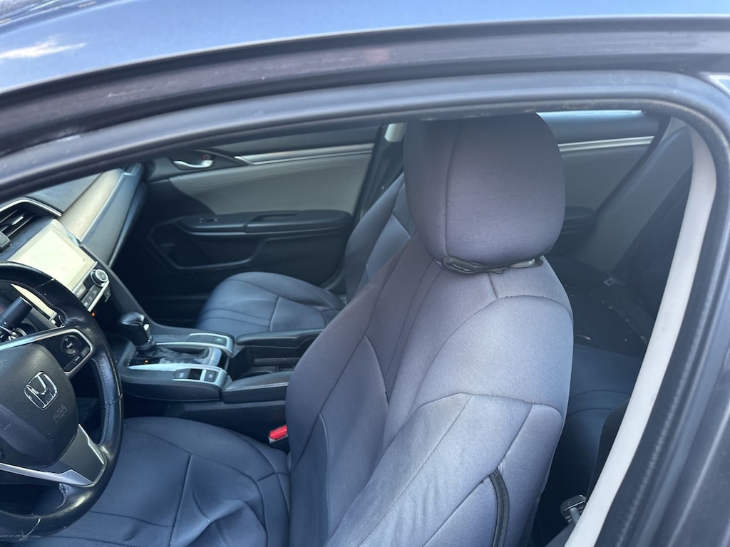 Honda Civic EX-L 2017 4-Wheel Disc Brakes, ABS brakes, Air Conditioning, Alloy wheels, Apple CarPlay/Android Auto, Auto-dimming Rear-View mirror, Automatic temperature control, Brake assist, Compass, Delay-off headlights, Driver vanity mirror, Dual front impact airbags, Dual front side impact airbags, Electronic Stability Control, Emergency communication system, Exterior Parking Camera Rear, Four wheel independent suspension, Front dual zone A/C, Front fog lights, Front reading lights, Fully automatic headlights, Heated door mirrors, Heated front seats, Illuminated entry, Leather Shift Knob, Low tire pressure warning, Occupant sensing airbag, Outside temperature display, Overhead airbag, Panic alarm, Passenger vanity mirror, Power door mirrors, Power driver seat, Power moonroof, Power steering, Power windows, Radio: 180-Watt AM/FM/HD/SiriusXM Audio System, Rear window defroster, Reclining Heated Front Bucket Seats, Remote keyless entry, Speed control, Speed-sensing steering, Speed-Sensitive Wipers, Split folding rear seat, Steering wheel mounted audio controls, Tachometer, Telescoping steering wheel, Tilt steering wheel, Traction control, Trip computer, Variably intermittent wipers. Odometer is 4059 miles below market average!