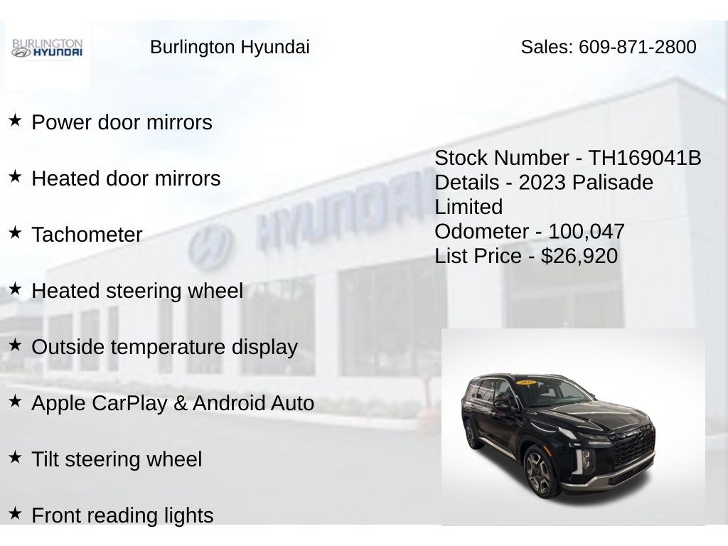 Elevate your driving experience and make a lasting impression with the 2023 Hyundai Palisade Limited. We're confident you'll be impressed by its uncompromising quality and the exceptional value it offers. Schedule a test drive today and discover the difference for yourself.