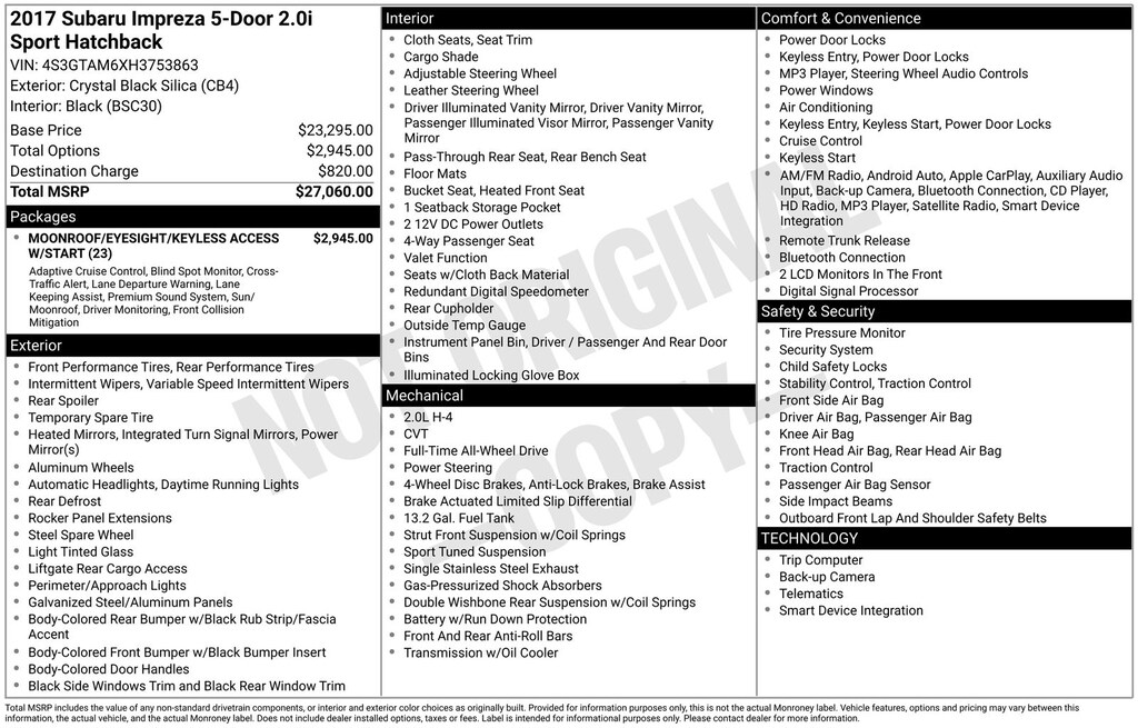 2017 Subaru Impreza 2.0i Sport