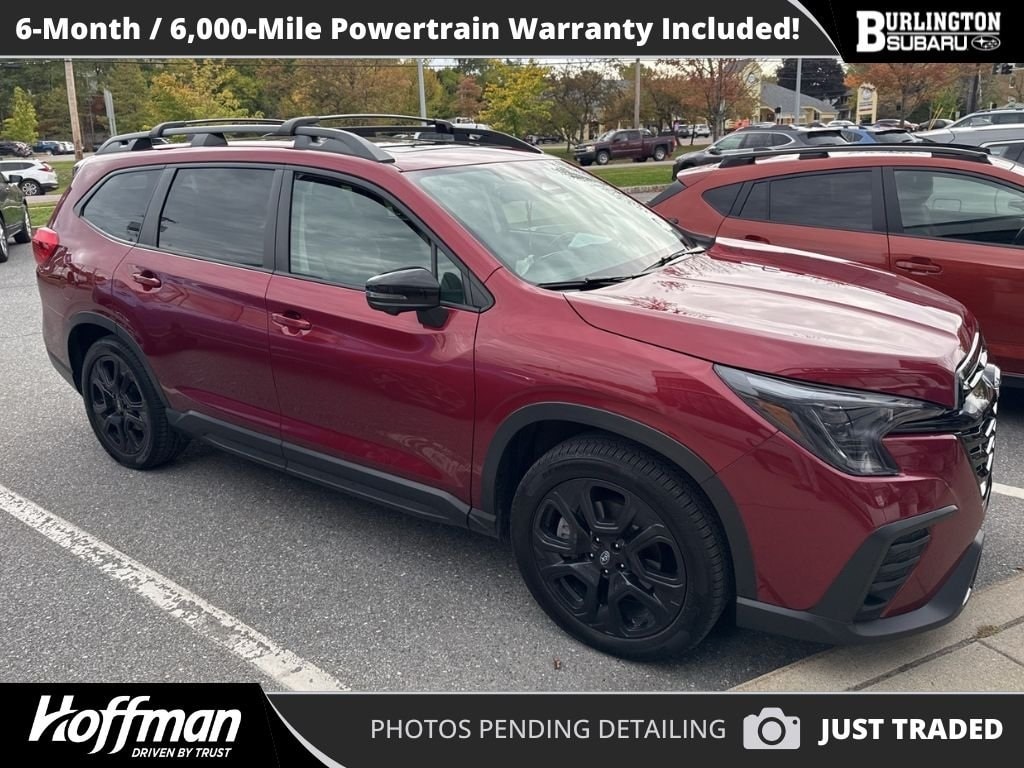 CARFAX One-Owner. Clean CARFAX. Subaru Ascent Onyx Edition 2023 4-Wheel Disc Brakes, ABS brakes, Air Conditioning, Alloy wheels, Auto High-beam Headlights, Auto-dimming Rear-View mirror, Automatic temperature control, Brake assist, Compass, Delay-off headlights, Driver vanity mirror, Dual front impact airbags, Dual front side impact airbags, Electronic Stability Control, Emergency communication system: STARLINK Safety and Security (Subscription Required), Four wheel independent suspension, Front dual zone A/C, Front fog lights, Front reading lights, Fully automatic headlights, Garage door transmitter: HomeLink, harman/kardon® Speakers, Heated door mirrors, Heated Front Bucket Seats, Heated steering wheel, HVAC memory, Illuminated entry, Knee airbag, Leather Shift Knob, Leather steering wheel, Low tire pressure warning, Memory seat, Navigation System, Occupant sensing airbag, Outside temperature display, Overhead airbag, Overhead console, Panic alarm, Passenger vanity mirror, Power door mirrors, Power driver seat, Power Liftgate, Power moonroof, Power passenger seat, Power steering, Power windows, Radio: Subaru STARLINK 11.6" Multimedia Nav System, Rear air conditioning, Rear reading lights, Rear window defroster, Rear window wiper, Reclining 3rd row seat, Remote keyless entry, Speed control, Speed-sensing steering, Split folding rear seat, STARLINK/Apple CarPlay/Android Auto, StarTex Upholstery, Steering wheel mounted audio controls, Tachometer, Telescoping steering wheel, Tilt steering wheel, Traction control, Trip computer, Turn signal indicator mirrors, Variably intermittent wipers.