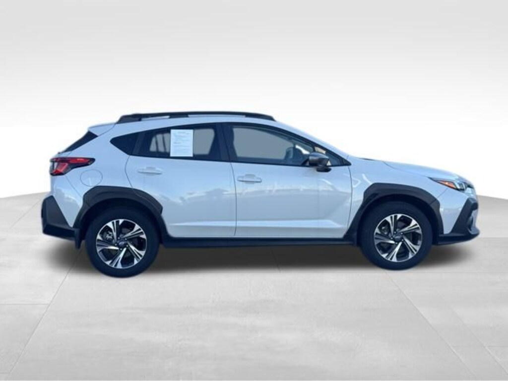 *One Owner*, Crosstrek Premium, Crystal White Pearl, 4-Wheel Disc Brakes, 6 Speakers, ABS brakes, Air Conditioning, AM/FM radio: SiriusXM, Anti-whiplash front head restraints, Auto High-beam Headlights, Automatic temperature control, Brake assist, Bumpers: body-color, Driver door bin, Driver vanity mirror, Dual front impact airbags, Dual front side impact airbags, Electronic Stability Control, Emergency communication system: STARLINK Safety and Security (Subscription Required), Exterior Parking Camera Rear, Four wheel independent suspension, Front anti-roll bar, Front Bucket Seats, Front Center Armrest, Front dual zone A/C, Front fog lights, Front reading lights, Fully automatic headlights, Illuminated entry, Knee airbag, Low tire pressure warning, Occupant sensing airbag, Outside temperature display, Overhead airbag, Overhead console, Panic alarm, Passenger vanity mirror, Power door mirrors, Power steering, Power windows, Premium Cloth Upholstery, Radio data system, Radio: Subaru STARLINK 11.6" Multimedia Plus Sys, Rear anti-roll bar, Rear seat center armrest, Rear window defroster, Rear window wiper, Remote keyless entry, Security system, Speed control, Speed-sensing steering, Split folding rear seat, Spoiler, Standard Model, STARLINK/Apple CarPlay/Android Auto, Steering wheel mounted audio controls, Tachometer, Telescoping steering wheel, Tilt steering wheel, Traction control, Trip computer, Turn signal indicator mirrors, Variably intermittent wipers, Wheels: 17" x 7.0J Dark Gray Aluminum Alloy.