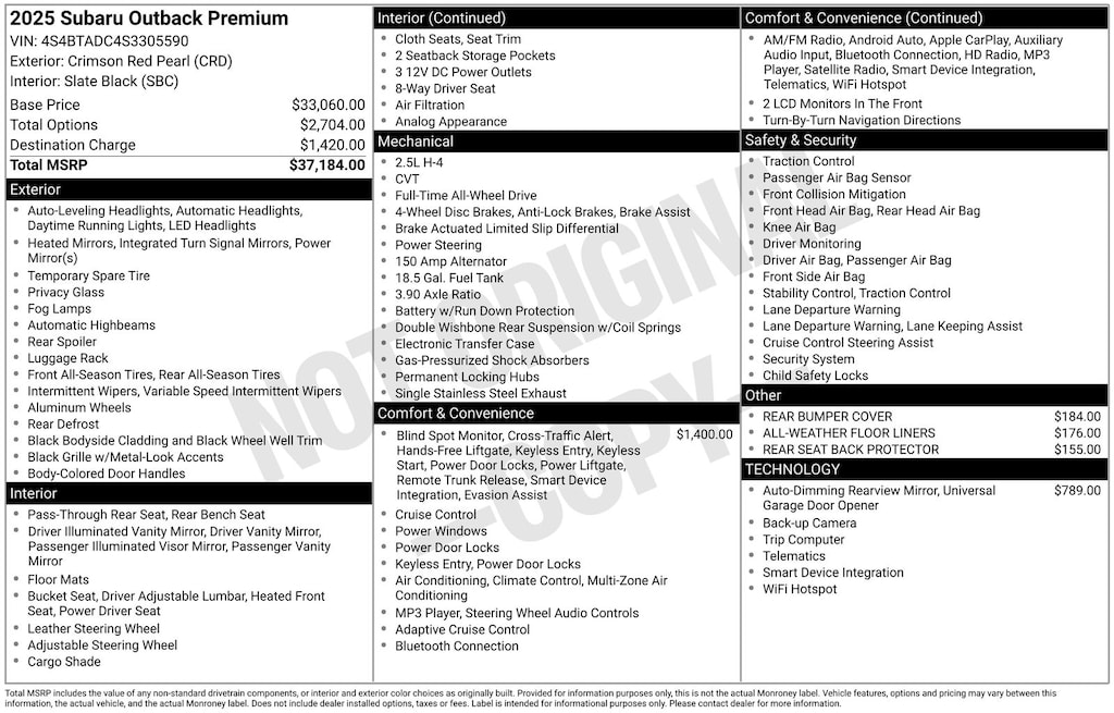 - Tracker system: MySubaru Security (6-month free trial included)